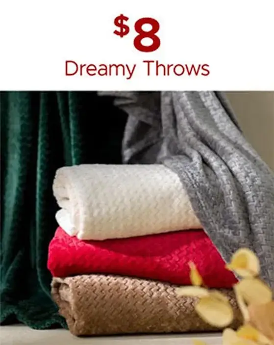 Hurry in and enjoy $8 dreamy throws in store for a limited time.