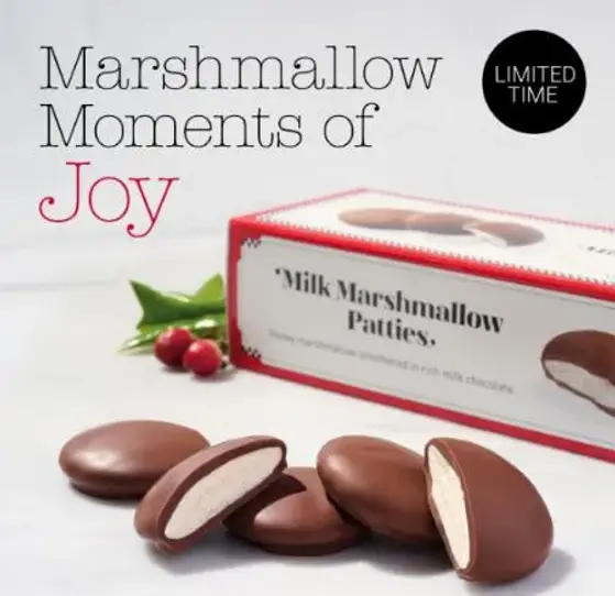 Wrap yourself in comfort with our Milk Marshmallow Patties — pillows of fluffy marshmallow enrobed in our smooth milk chocolate. These treats only come along once a year, so indulge while you can (and while supplies last). Shop in store today!