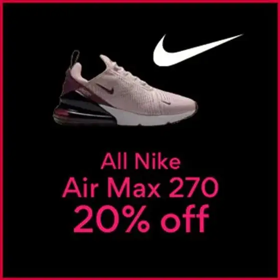 Hurry in and take 20% off all Nike Air Max 270 in store for a limited time.